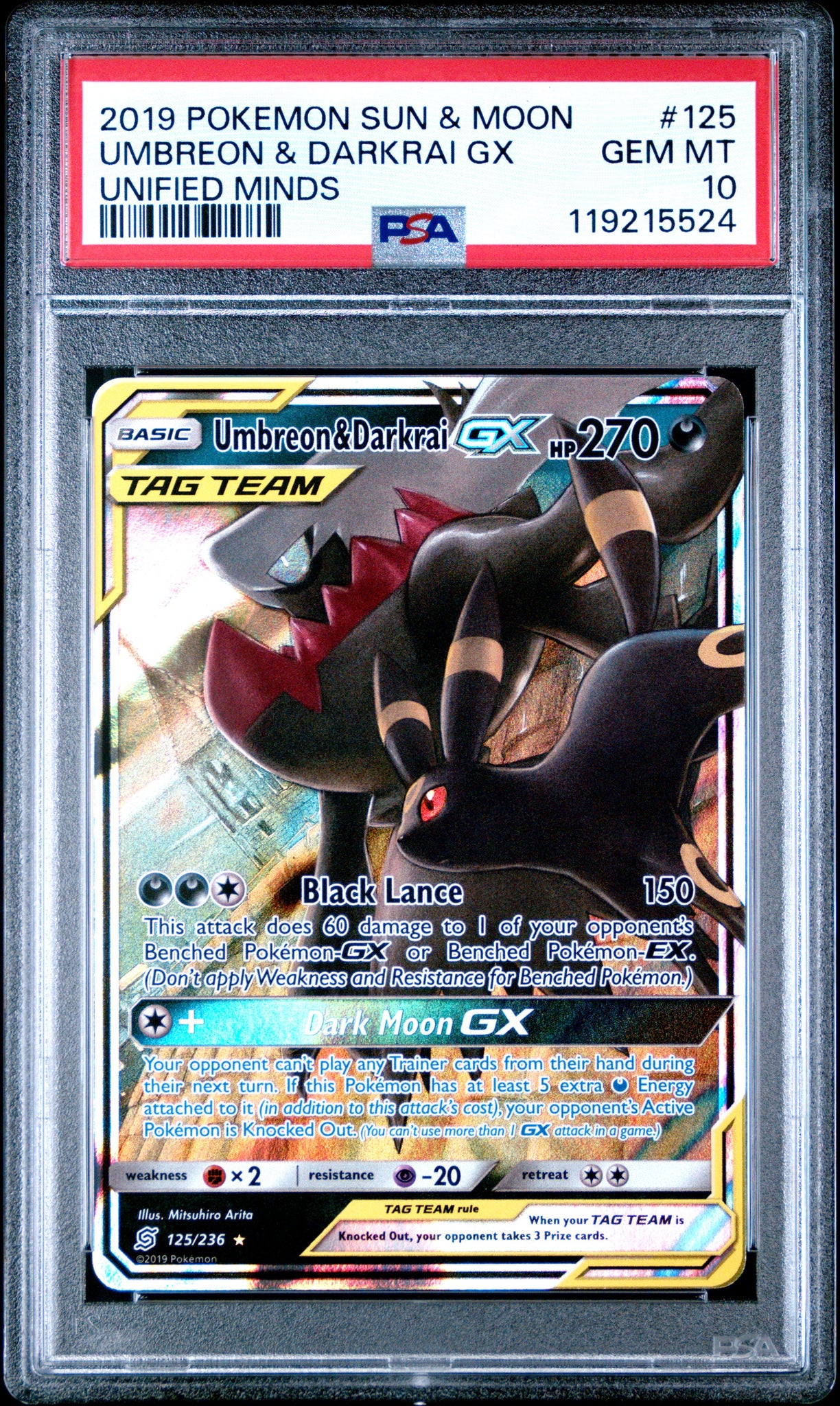 Pokemon Umbreon & Darkrai GX Unified Minds 125/236 PSA 10