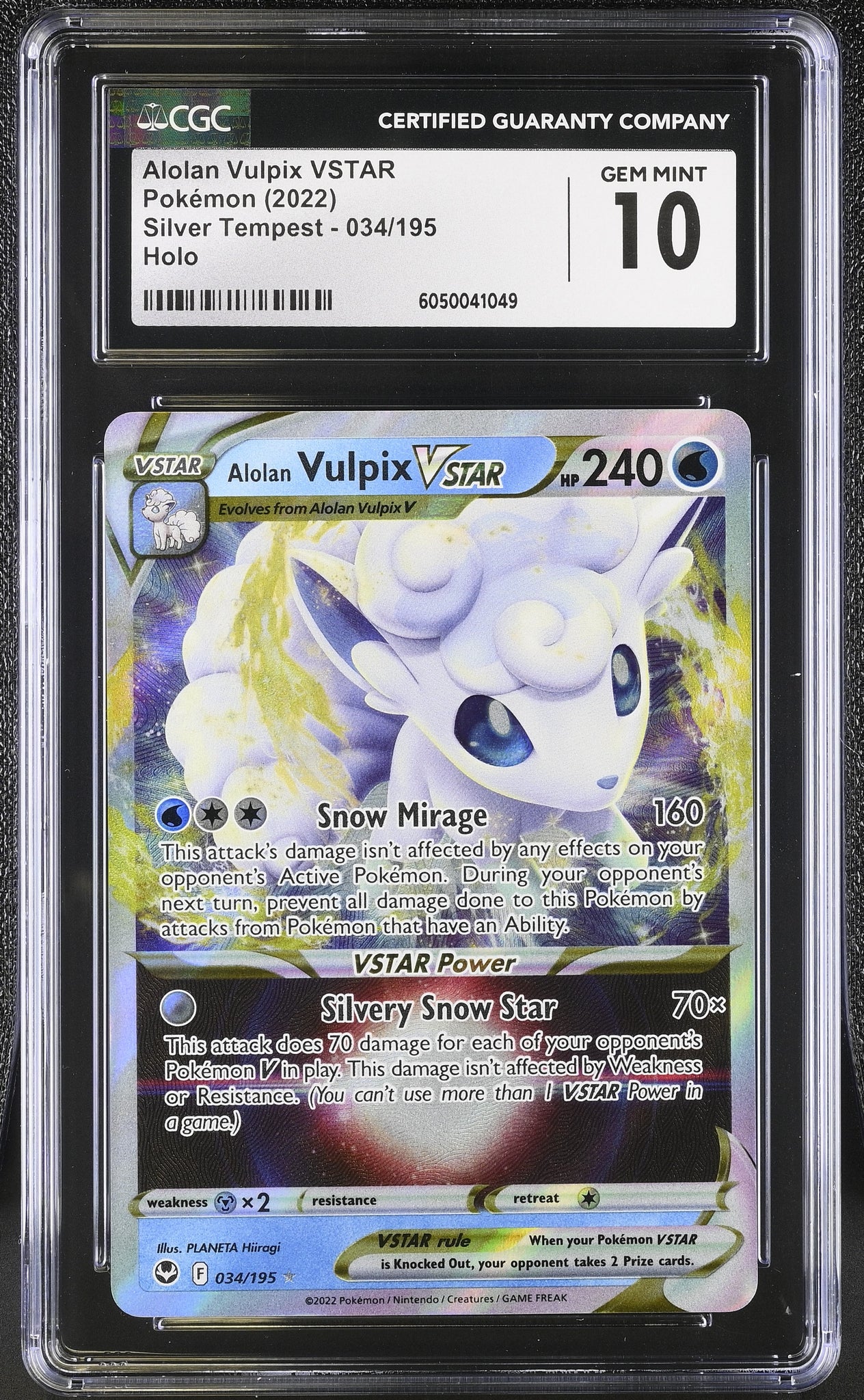 Pokemon Alolan Vulpix Vstar Holo Silver Tempest 034/195 CGC Gem Mint 10